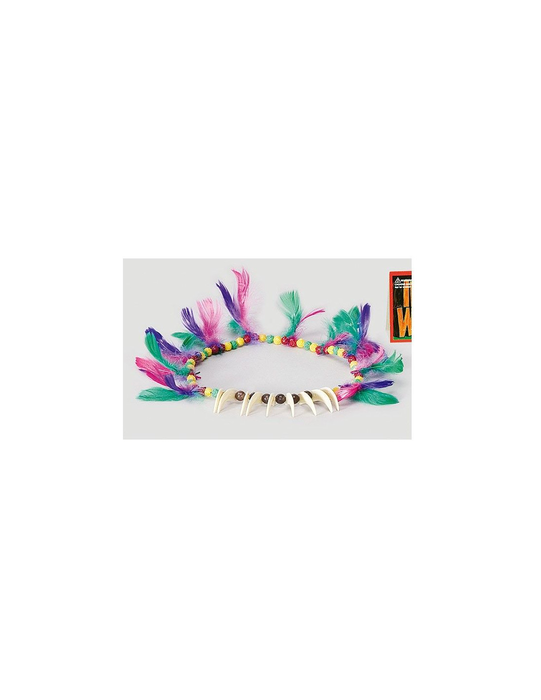 Complementa tu disfraz de indio con este collar de plumas de colores.