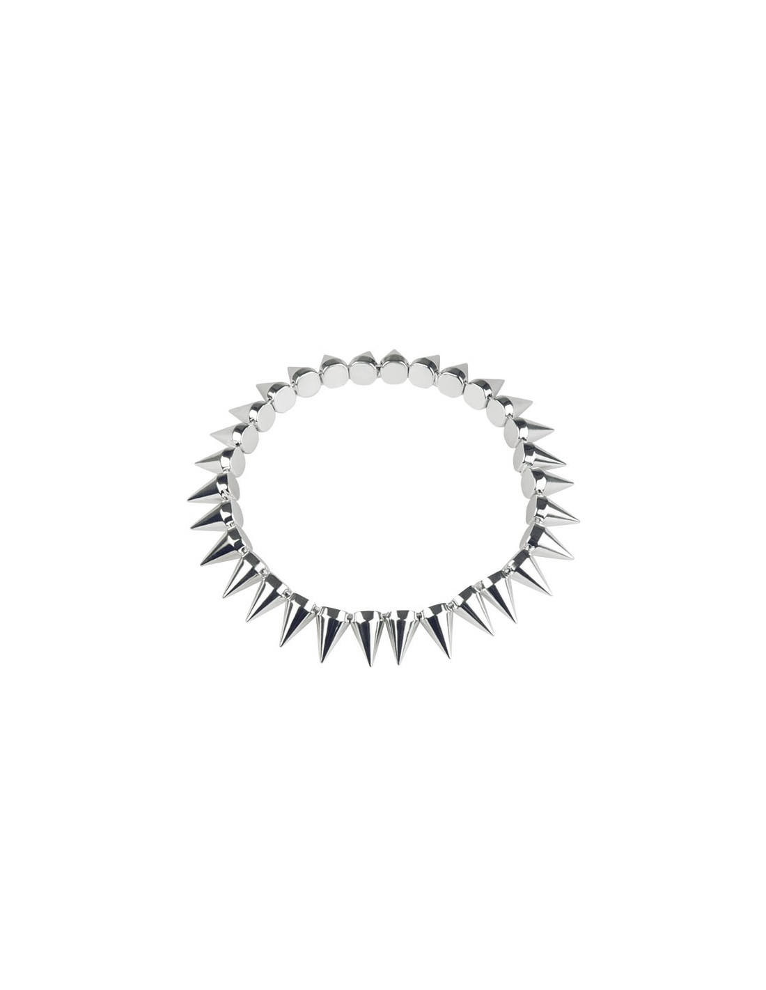 Collar punky plateado imitando el metal. Este collar es elástico para facilitar su colocación.