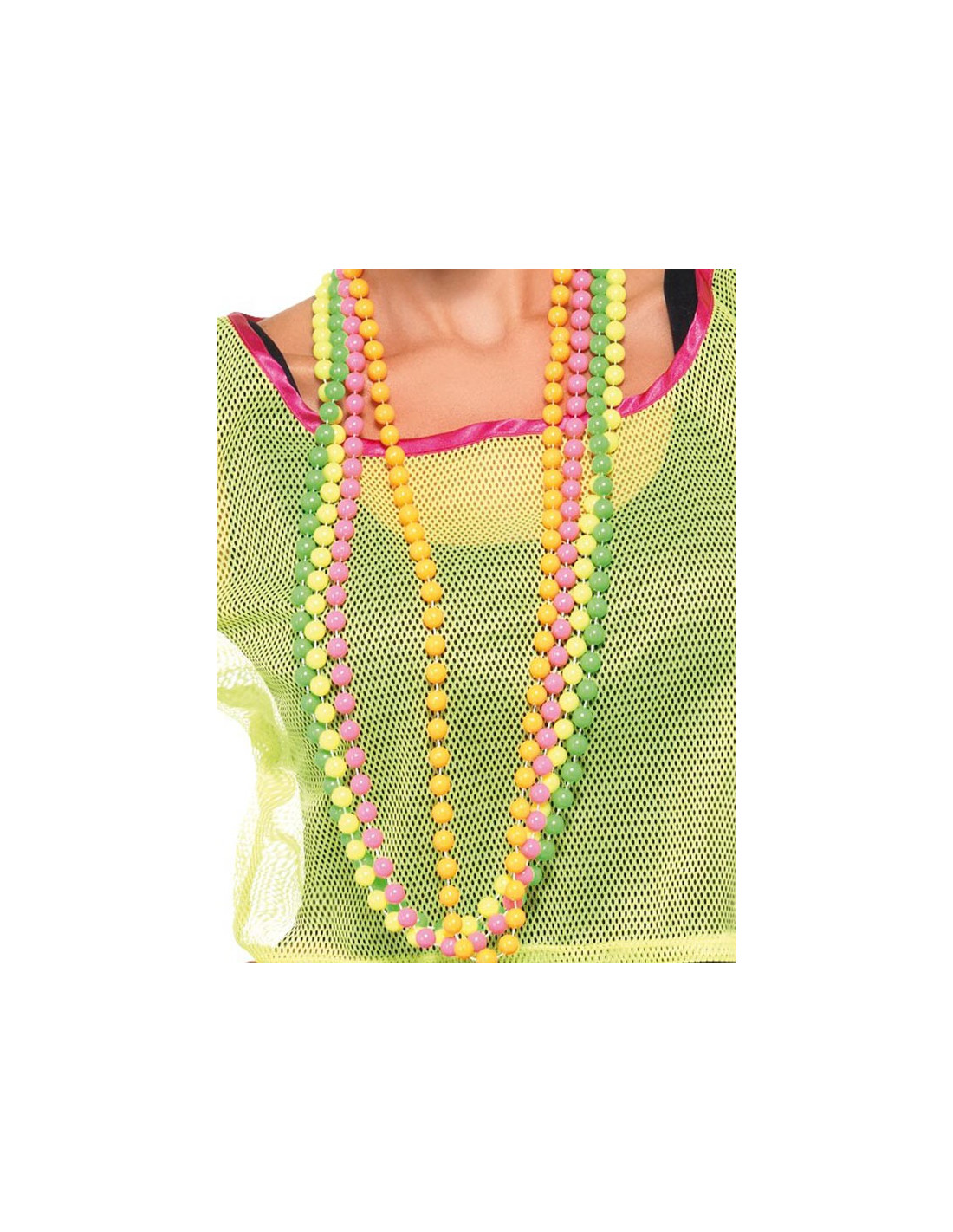 Vuelve a los años 80 y dale a tu disfraz el colorido que le hacia falta con estos llamativos y coquetos collares en colores fluor. Ideal para Carnaval, fiestas temáticas o despedidas de soltera.