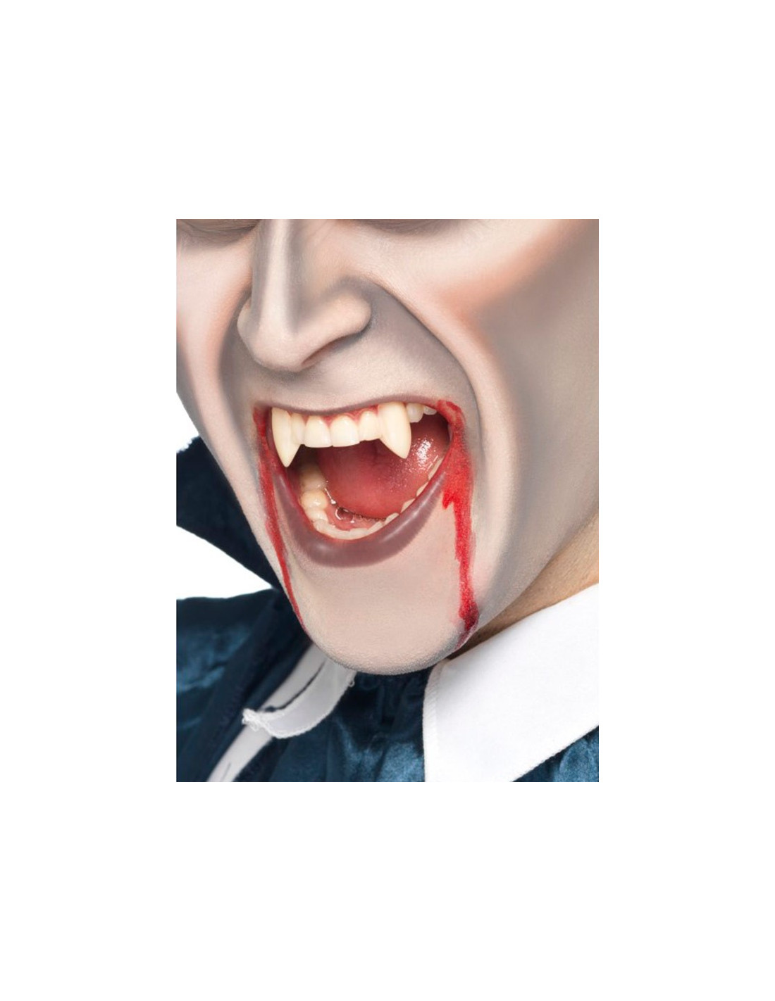 Ya no tienes excusa para pegar un buen mordisco la noche de Halloween con estos afilados colmillos de vampiro. Es necesario un pegamento para adherir los colmillos.