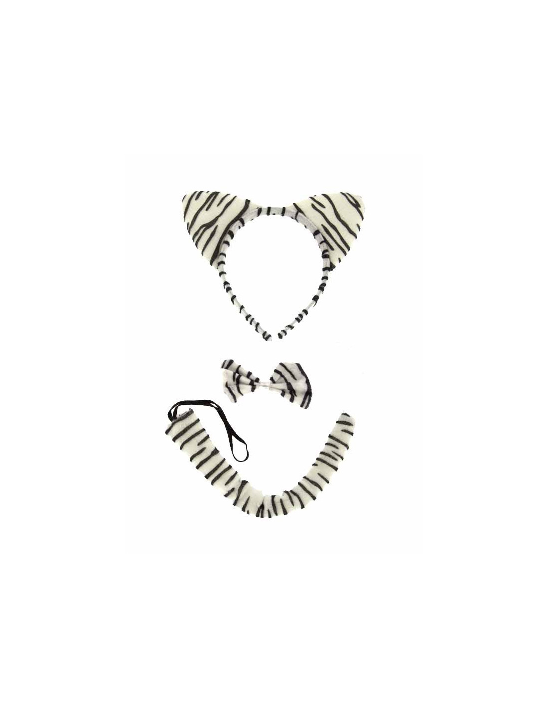 Conjunto de cebra que incluye diadema con orejas, rabo y pajarita.