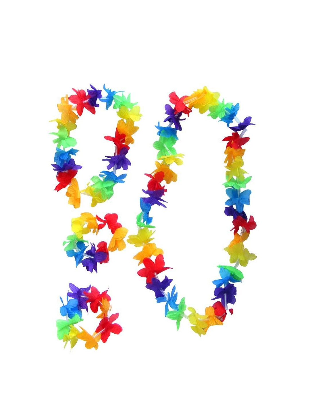 Complementa tu disfraz de hawaiana/o y prepárate para mover tus caderas al ritmo del Hula, con este set hawaiano deluxe. Incluye un fenomenal set hawaiano deluxe fabricado en tela, compuesto por un collar, un par de muñequeras y una diadema para la cabeza, decorados con flores para darle un aspecto mucho más tropical.