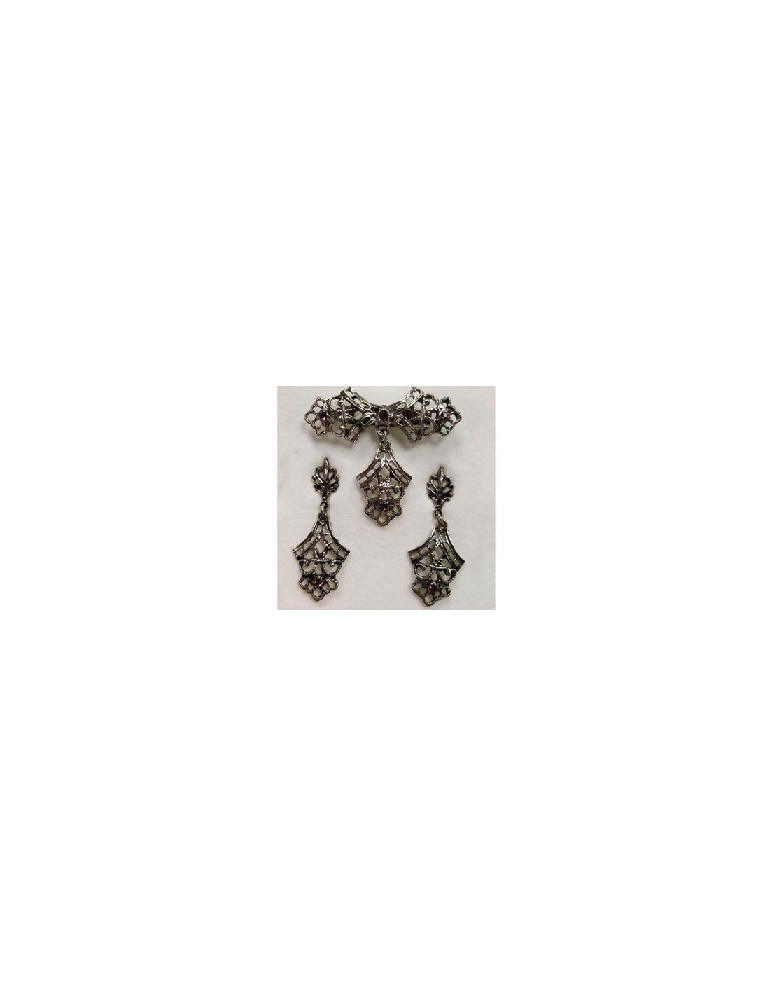 Conjunto de pendientes de 4x1,5cm y broche de 4,5x4cm.