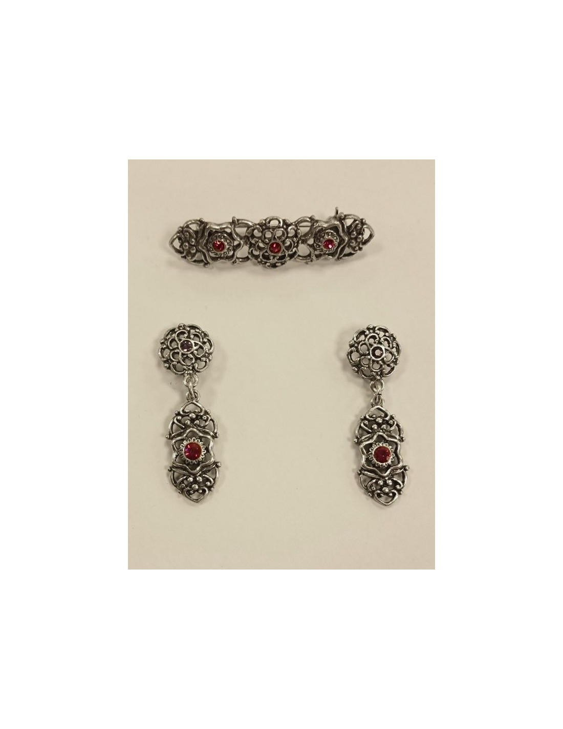 Conjunto de pendientes de 4,5x1cm y broche de 5x1cm.