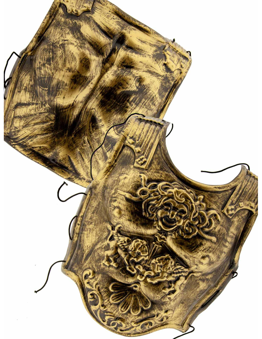 Incluye coraza delantera y trasera de plástico en color oro envejecido.