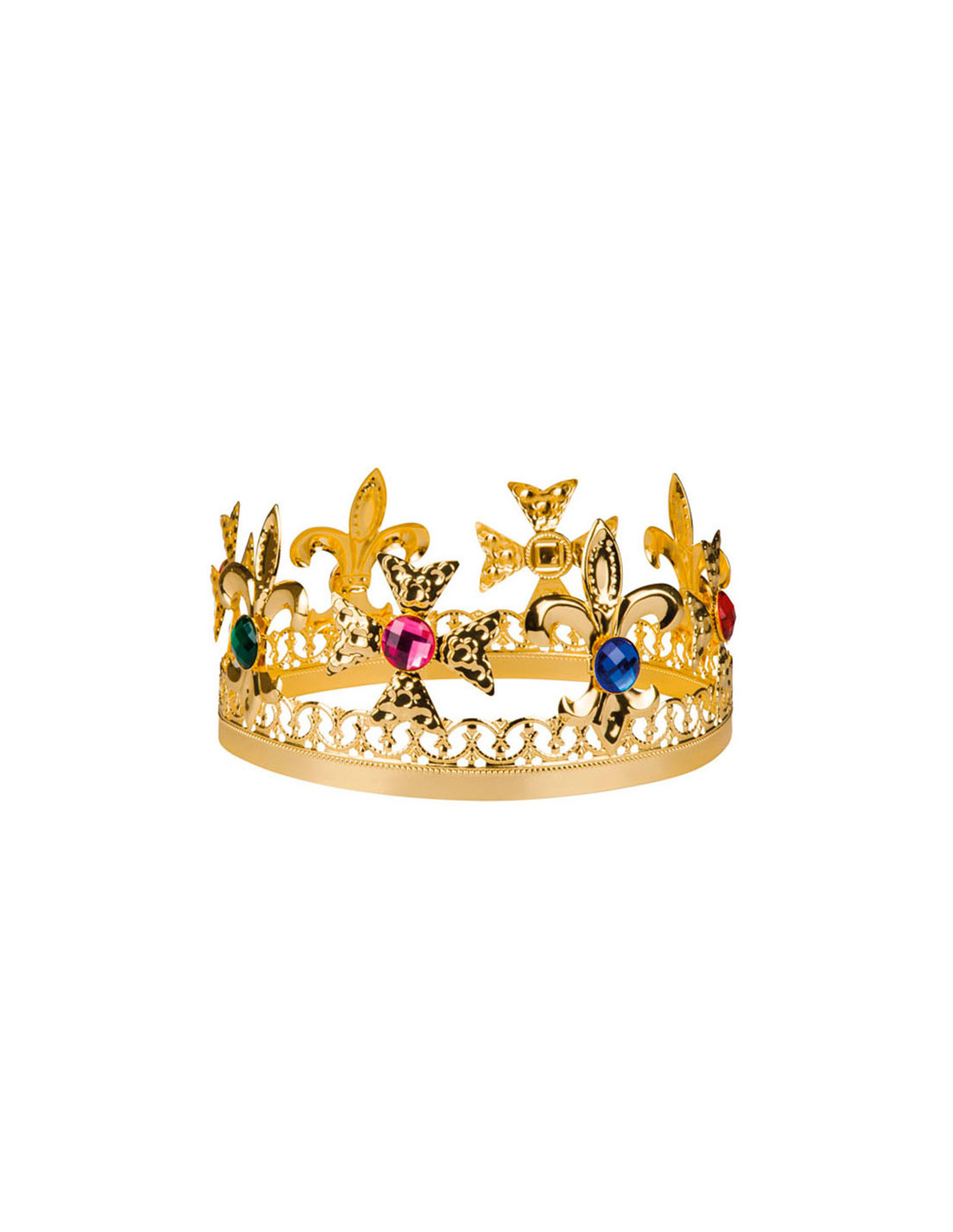 Esta Corona Rey Enrique dorada es metálica y tiene joyas falsas incrustadas. La corona sirve para un contorno de cabeza de 58cm.