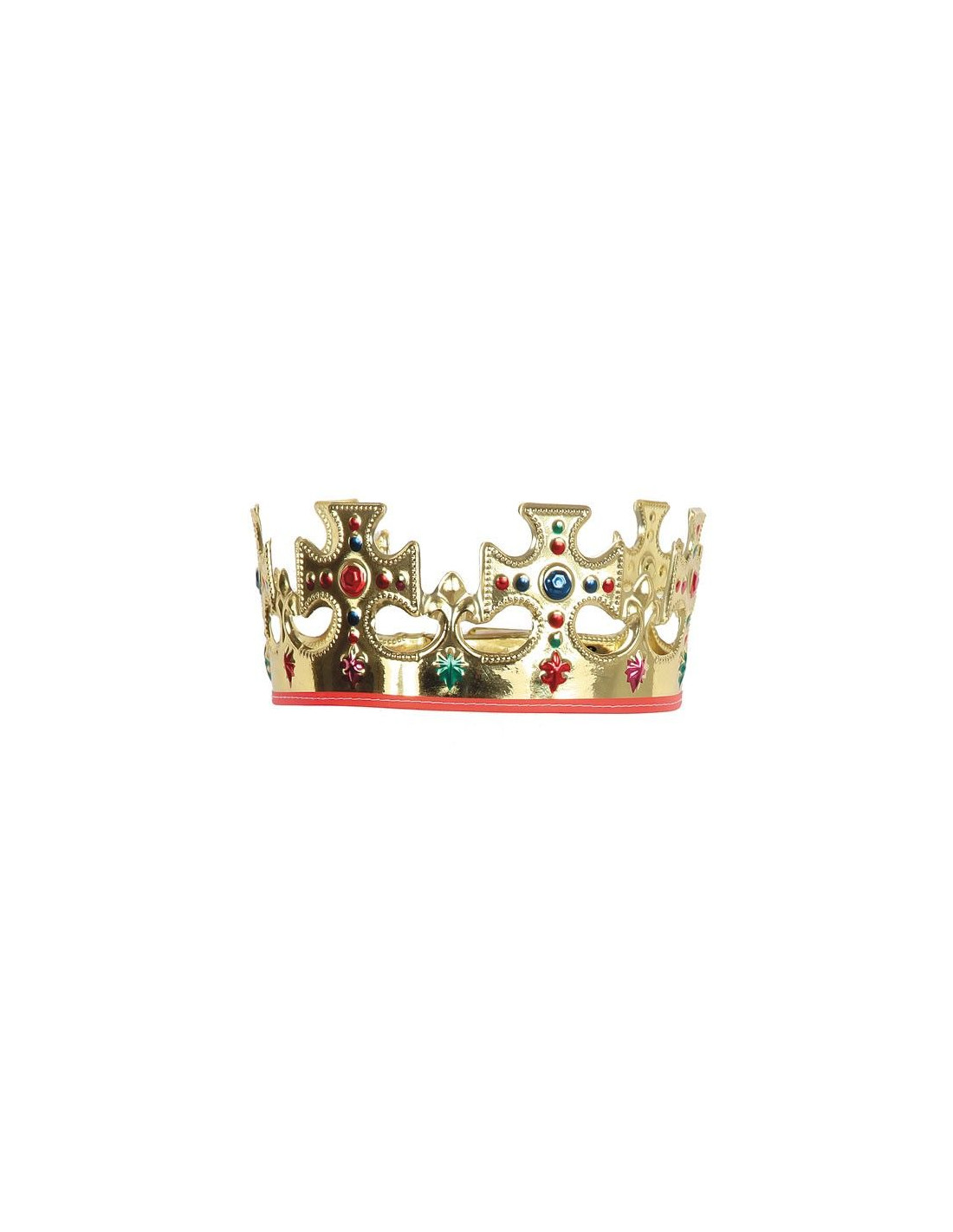 Corona rey plástico que incluye una corona dorada ajustable con piedras de colores pintadas.