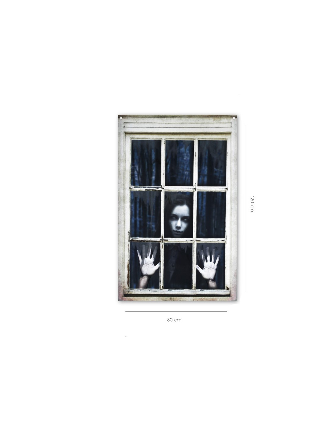 La cortina ventana Halloween contiene una tela estampada simulando una ventana y una misteriosa mujer. La tela mide 120x80cm.
