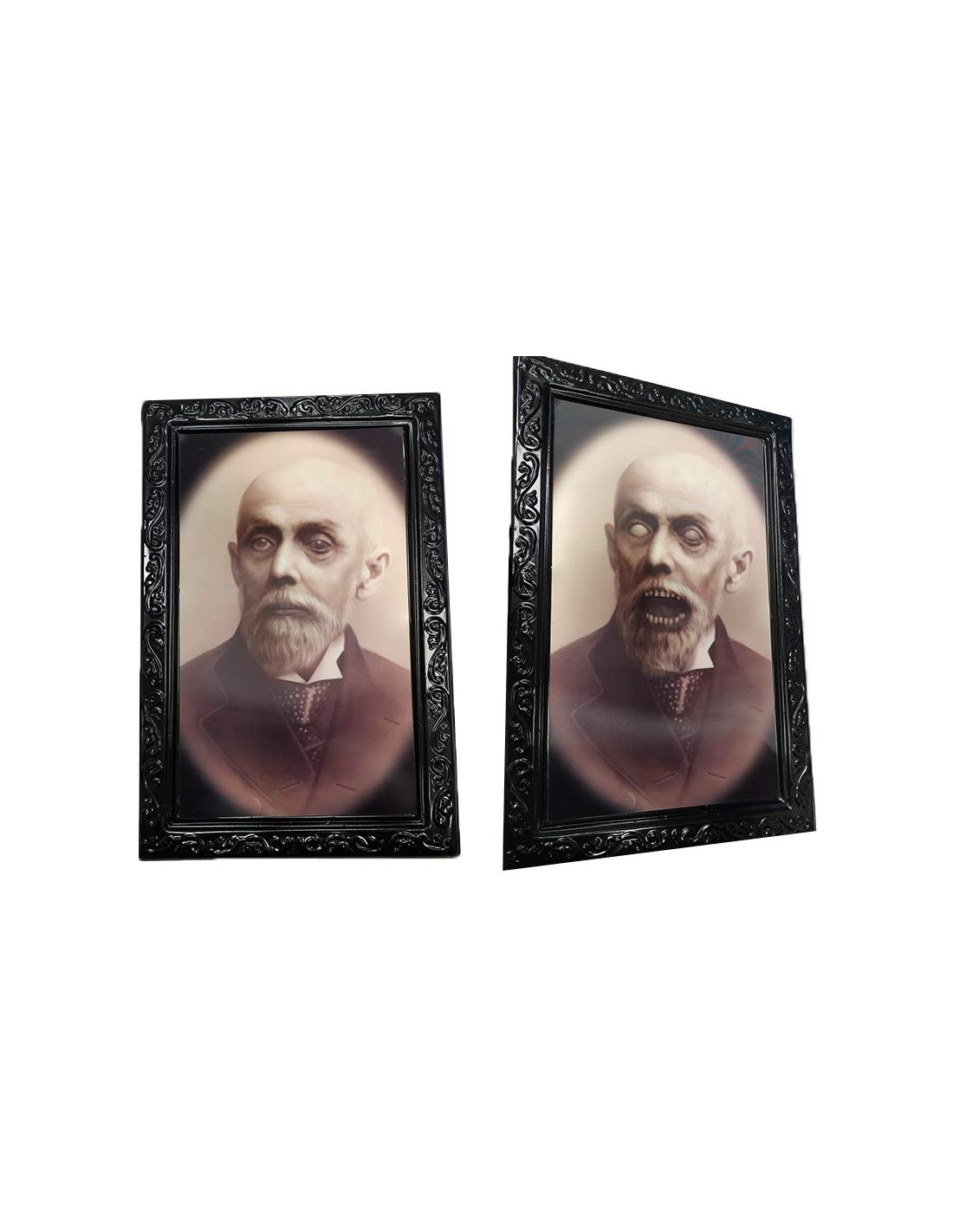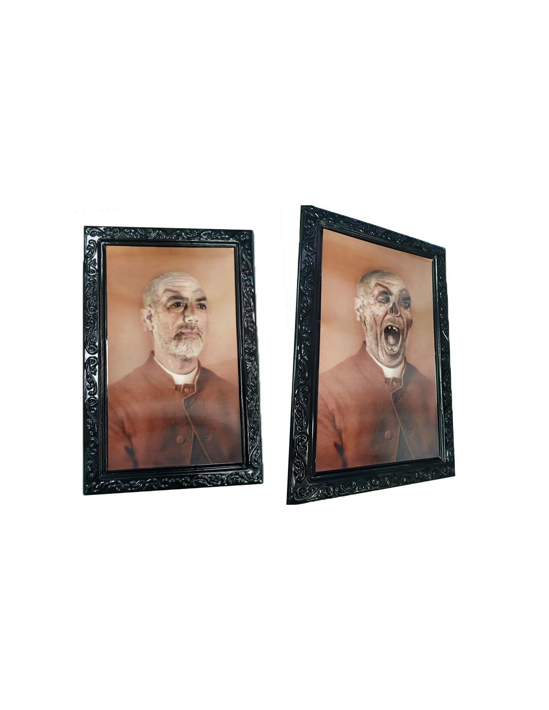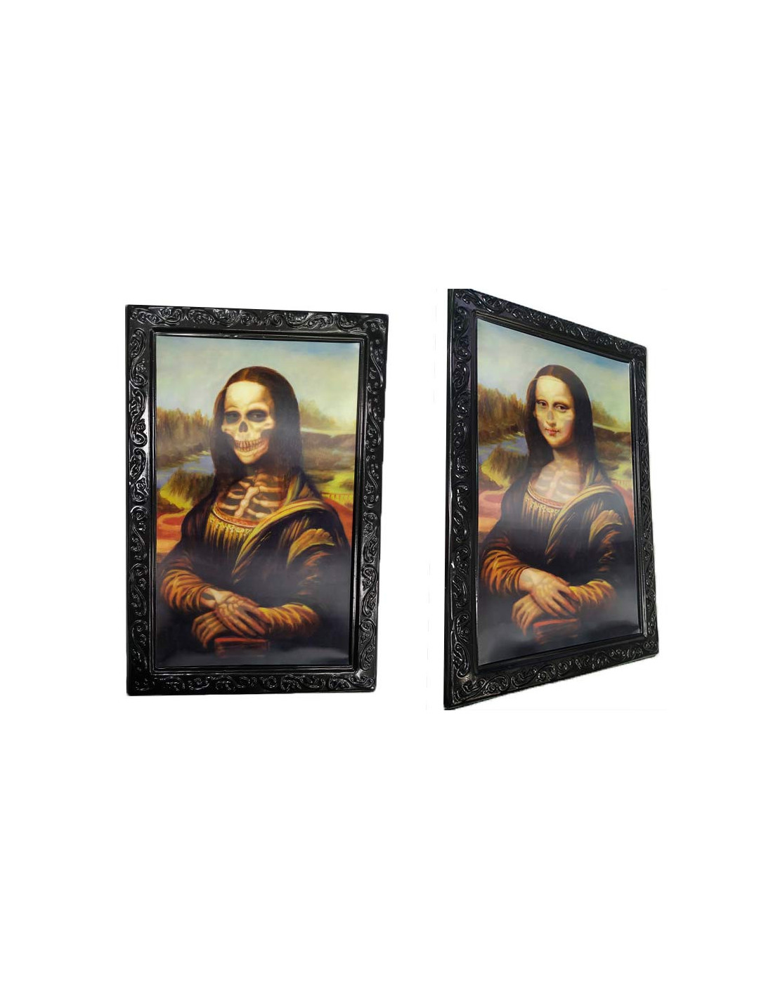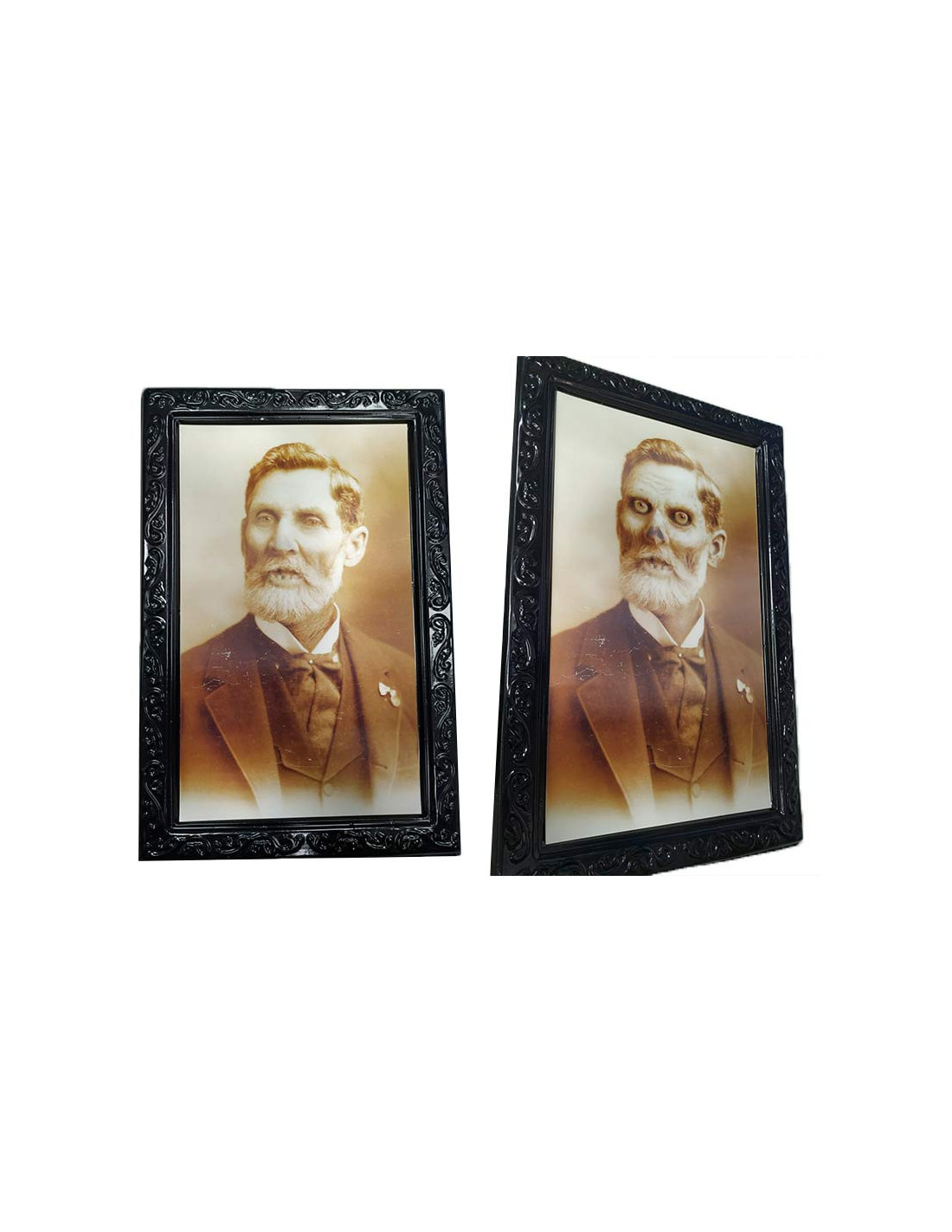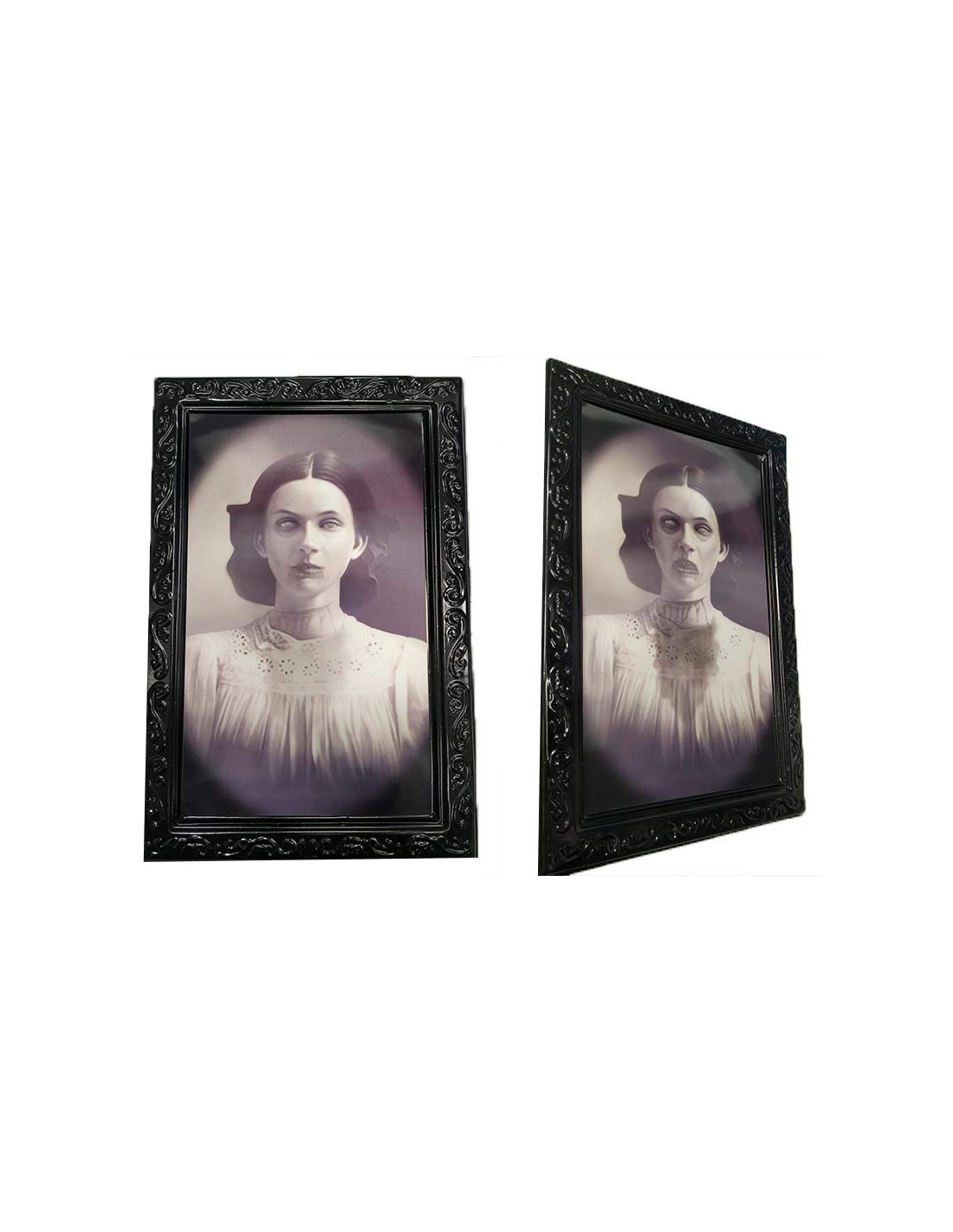 Original cuadro Halloween cambiante pequeño para decorar tu fiesta de terror. Parece un inofensivo cuadro pero cuando te muevas a su alrededor una escalofriante imagen aparecerá en el cuadro.