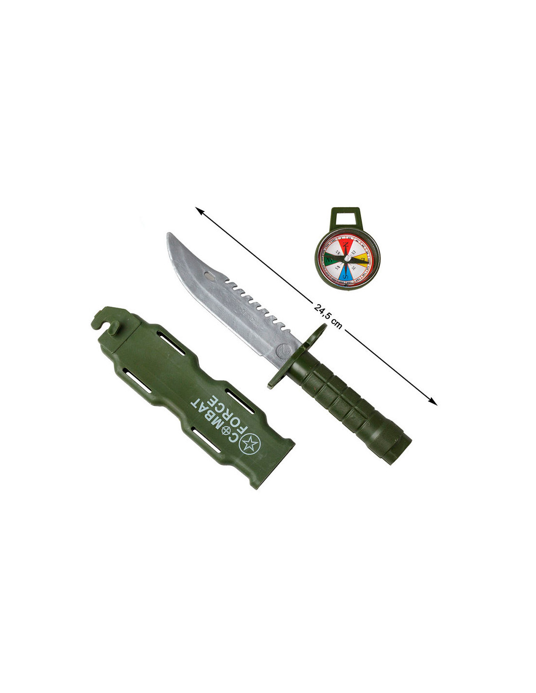 Cuchillo militar con brújula de plástico. El cuchillo mide 24,5cm de largo.
