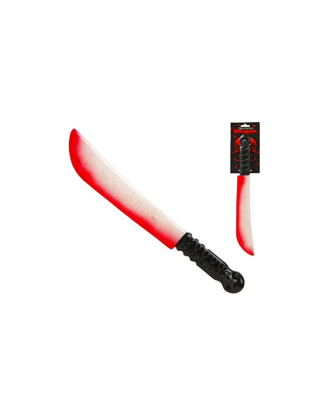Cuchillo sangriento de plástico para tu disfraz de Halloween. Consta de un cuchillo manchado de sangre con un tamaño de 45x10cm.
