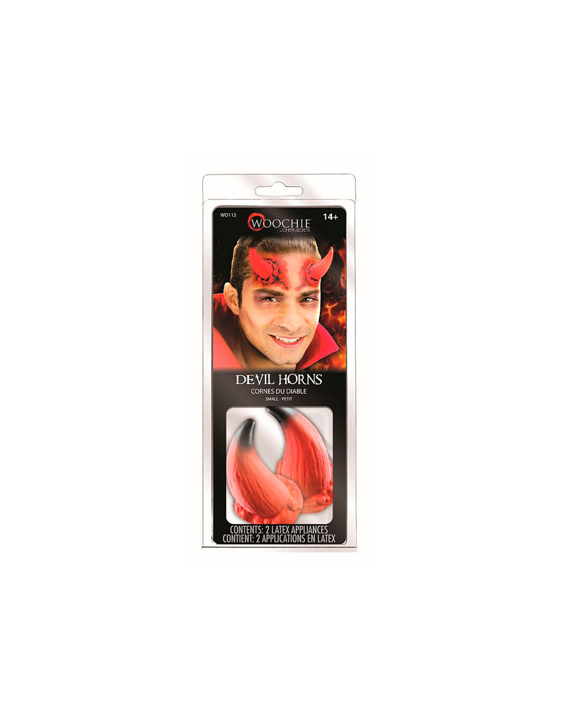 Contiene un par de cuernos de látex. No incluye adhesivo pero se puede utilizar un pegamento para postizos o mástix. Acompáñalo de maquillaje rojo y carne artificial para darle un mayor realismo.