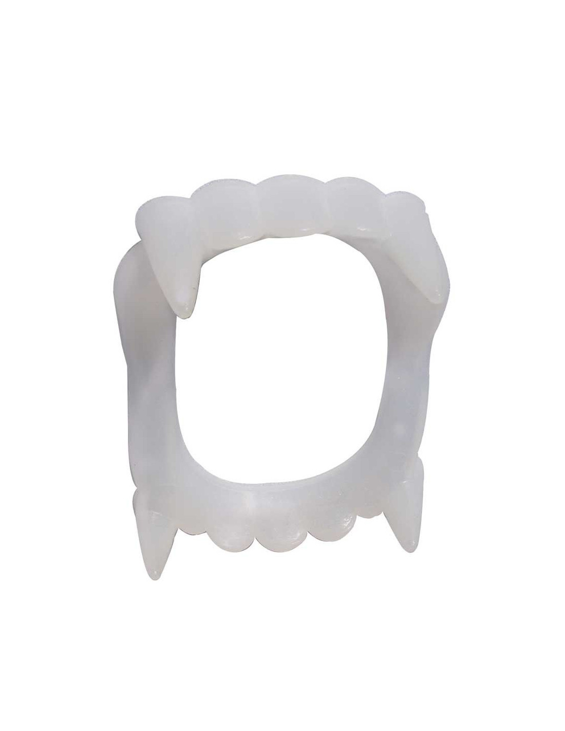 Dientes de vampiro blancos, fabricados en plástico de pvc flexible, ideales para tu disfraz de conde Drácula este Halloween.