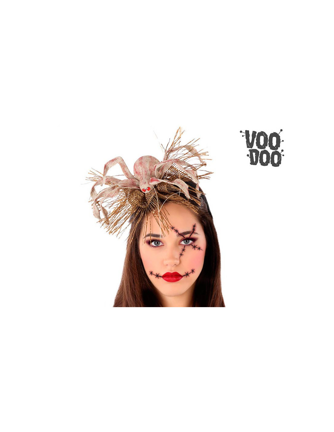 Diadema araña de trapo que contiene una diadema con una araña a modo de tocado.