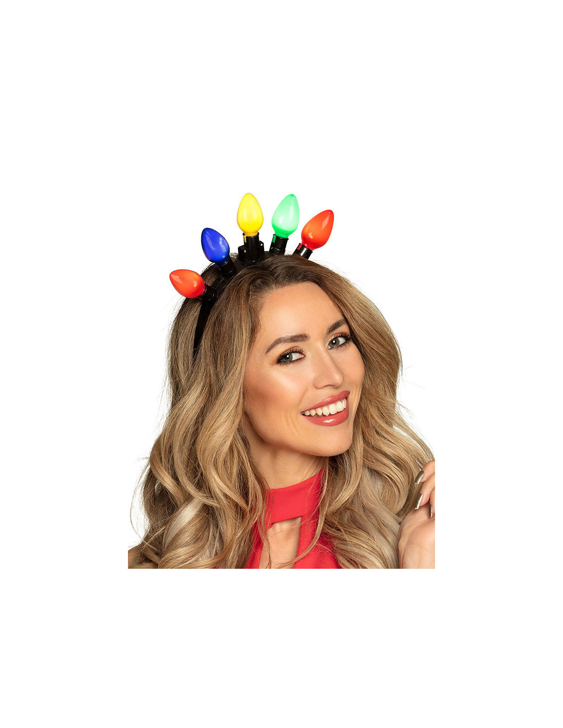 Original diadema bombillas de colores con luz para no pasar desapercibida estas navidades o en fiestas temáticas. Acuda a tu cena navideña con esta luces similares a las de los árboles de Navidad, ¡esa noche triunfas!