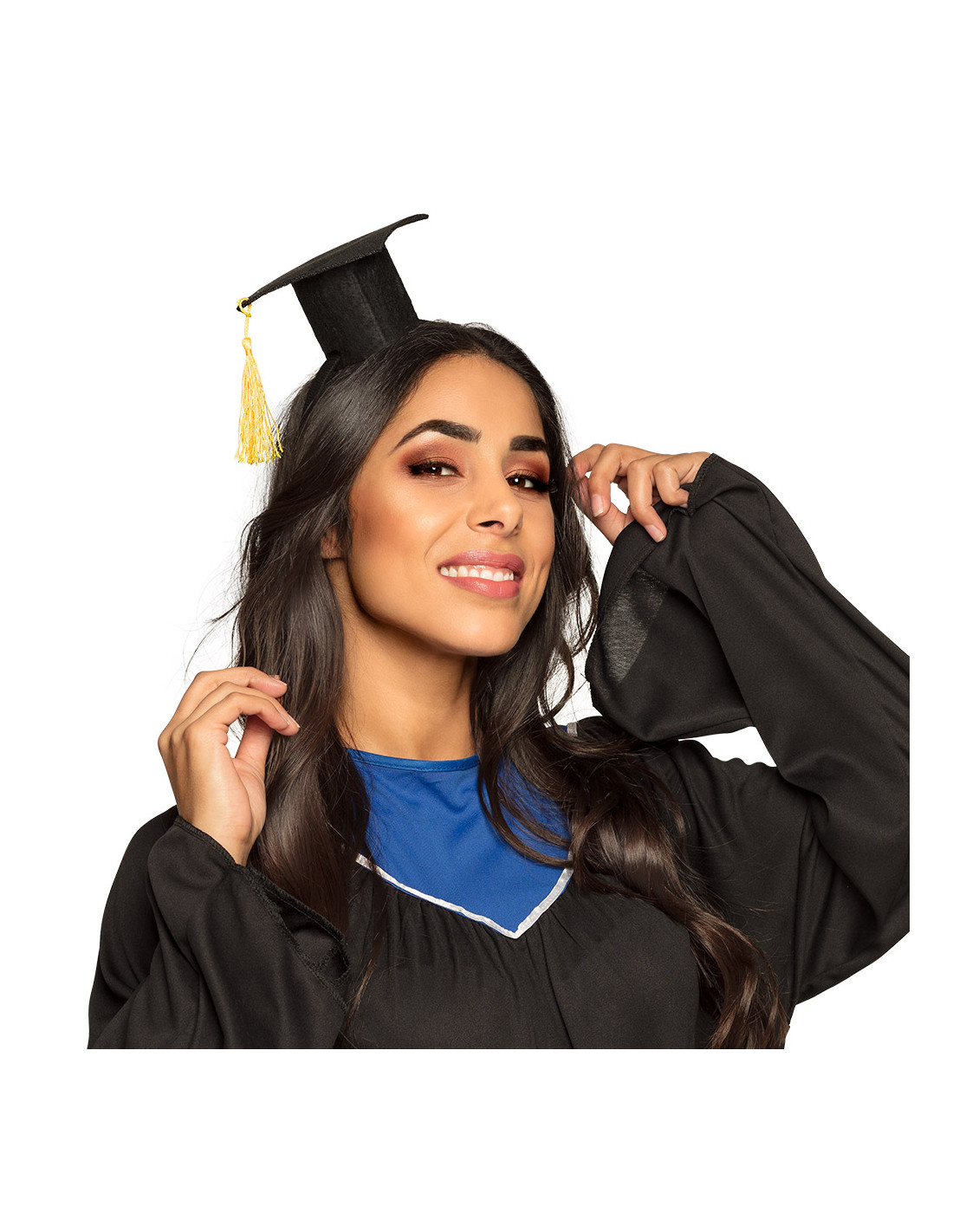 Si estás buscando un accesorio único y original para tu ceremonia de graduación, nuestra diadema con mini birrete es la elección perfecta. La diadema cuenta con un birrete en miniatura en lugar del clásico birrete completo. Con esta diadema, podrás destacar entre la multitud y añadir un toque especial a tu atuendo de graduación.