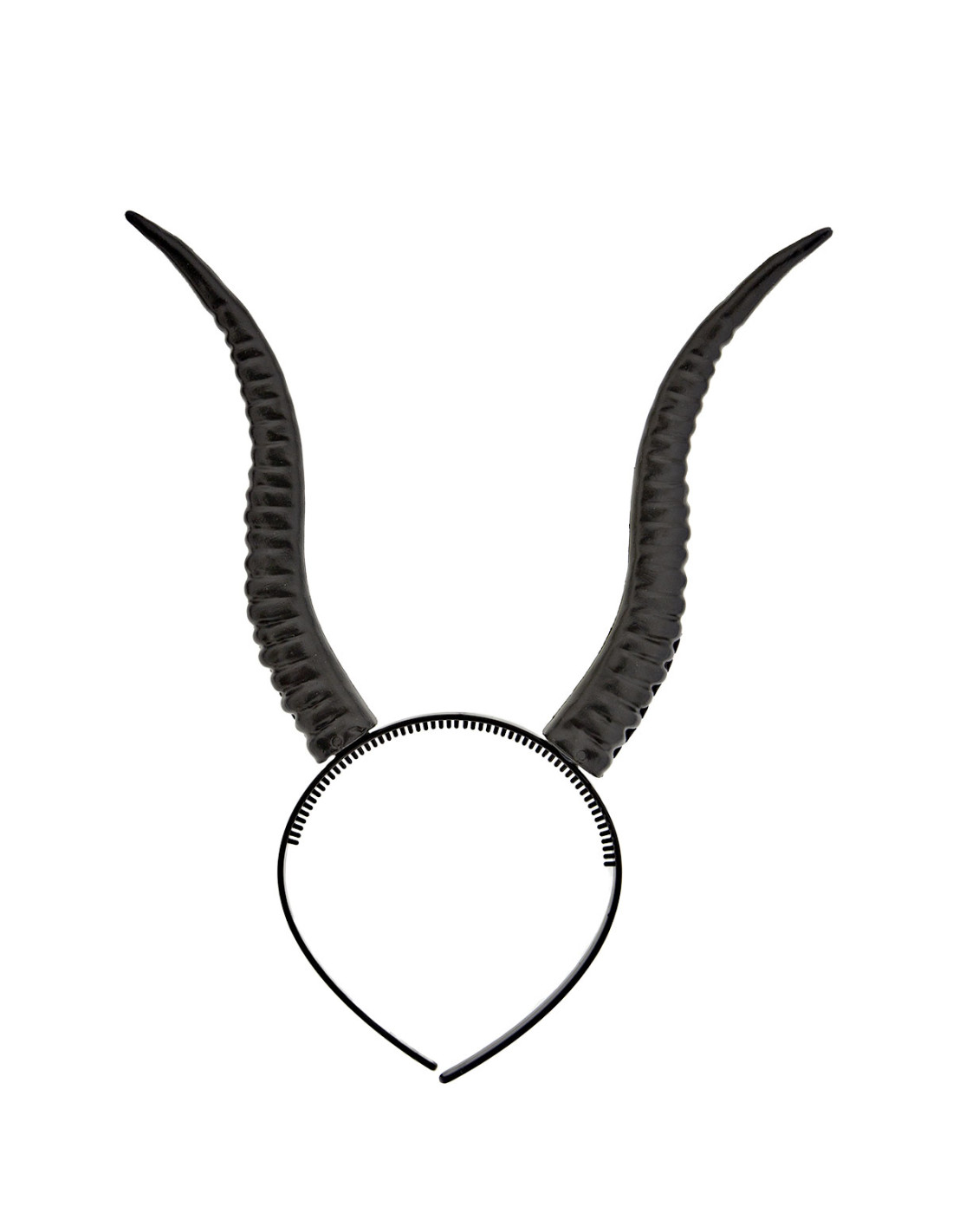 Contiene una diadema con dos cuernos de plástico con relieve. Cada uno mide 19cm de alto aproximadamente.