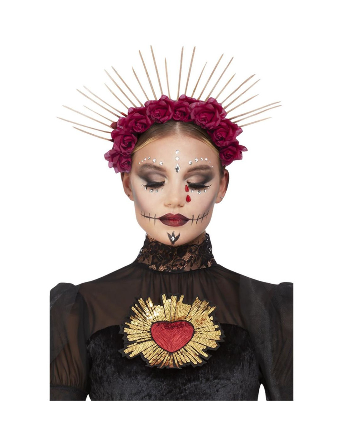 Diadema del Día de Muertos, con rosas y púas. Maquillaje no incluido.