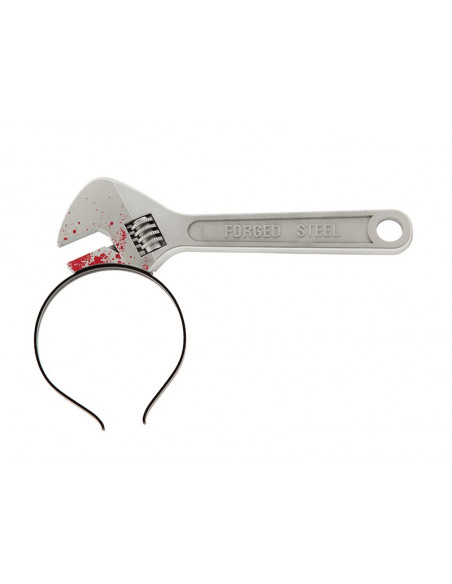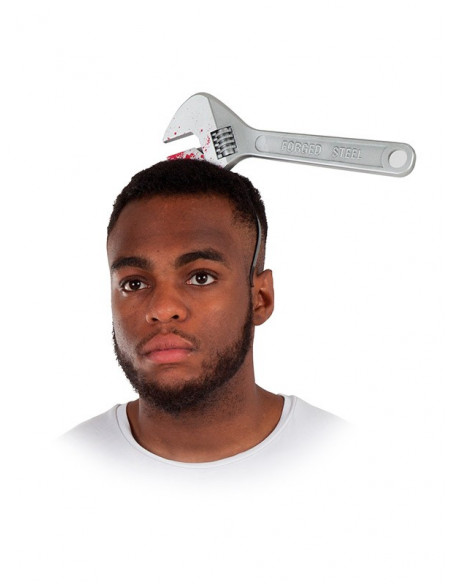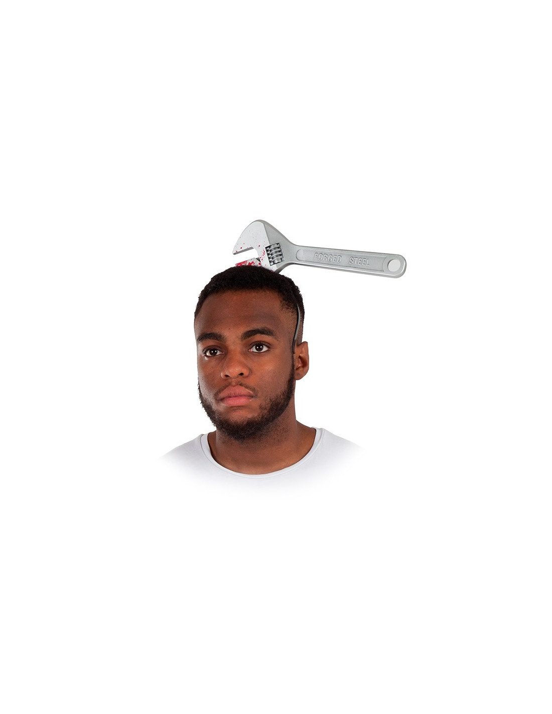 Coloca esta diadema llave inglesa y un poco de sangre sobre tu cabeza para convertirte en un accidentado zombie. Este Halloween pega un susto de muerte a tus amigos, parecerá que te han clavado en la cabeza esta llave inglesa.