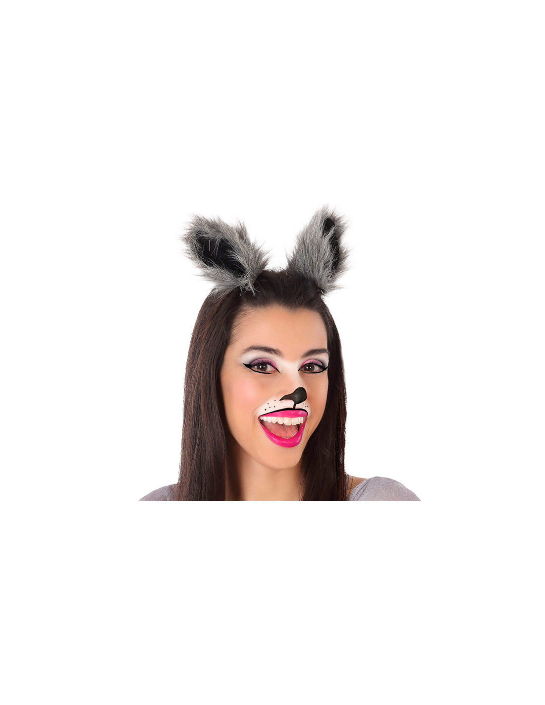 Contiene una diadema con negra con un par de orejitas de pelo largo gris.