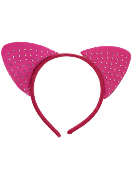 Diadema orejitas de gato con brillantes. Tres colores a elegir: rosa, blanco o negro.