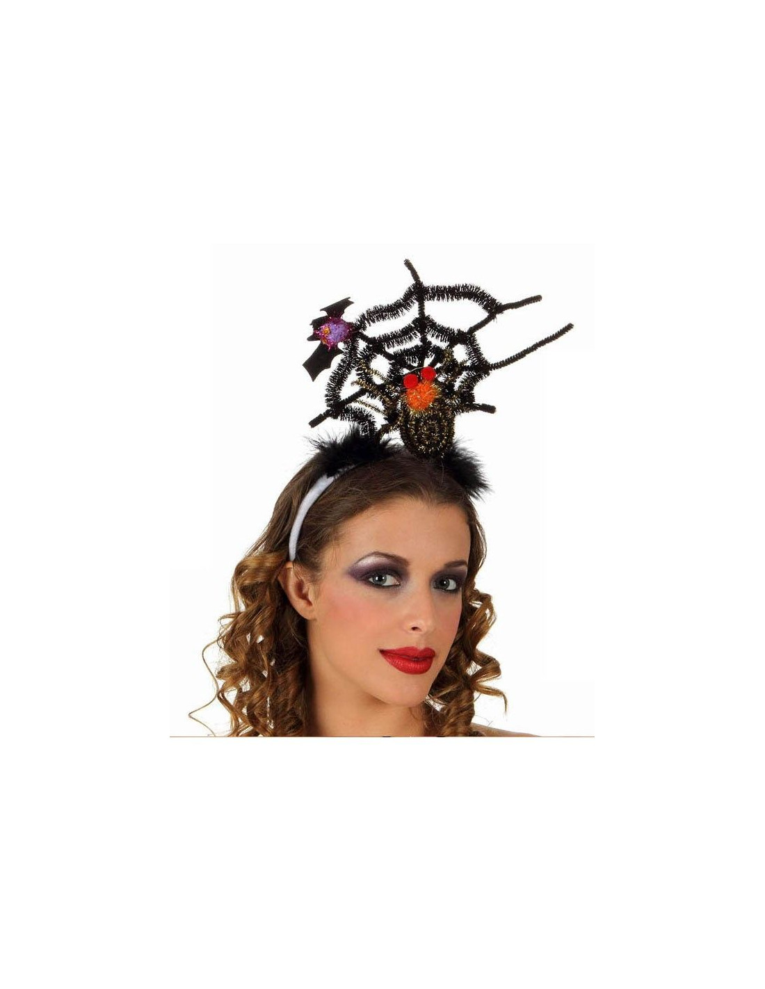 Diadema con telaraña, araña y murcielago, para utilizar con tu disfraz en halloween, complemento muy versatil.