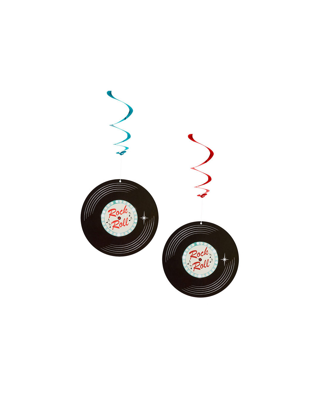 Discos rock and roll decorativos que incluye dos discos colgantes de 85cm de largo.