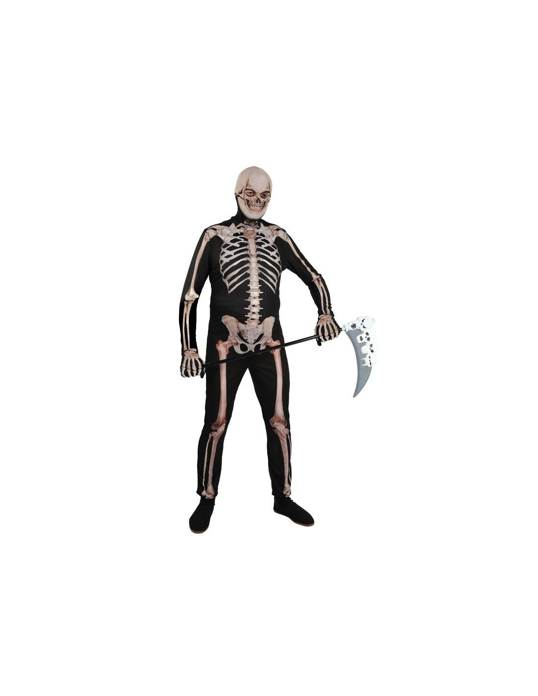 Disfraz Esqueleto hombre, incluye mono y careta de licra con estampacion a todo color de un esqueleto humano.