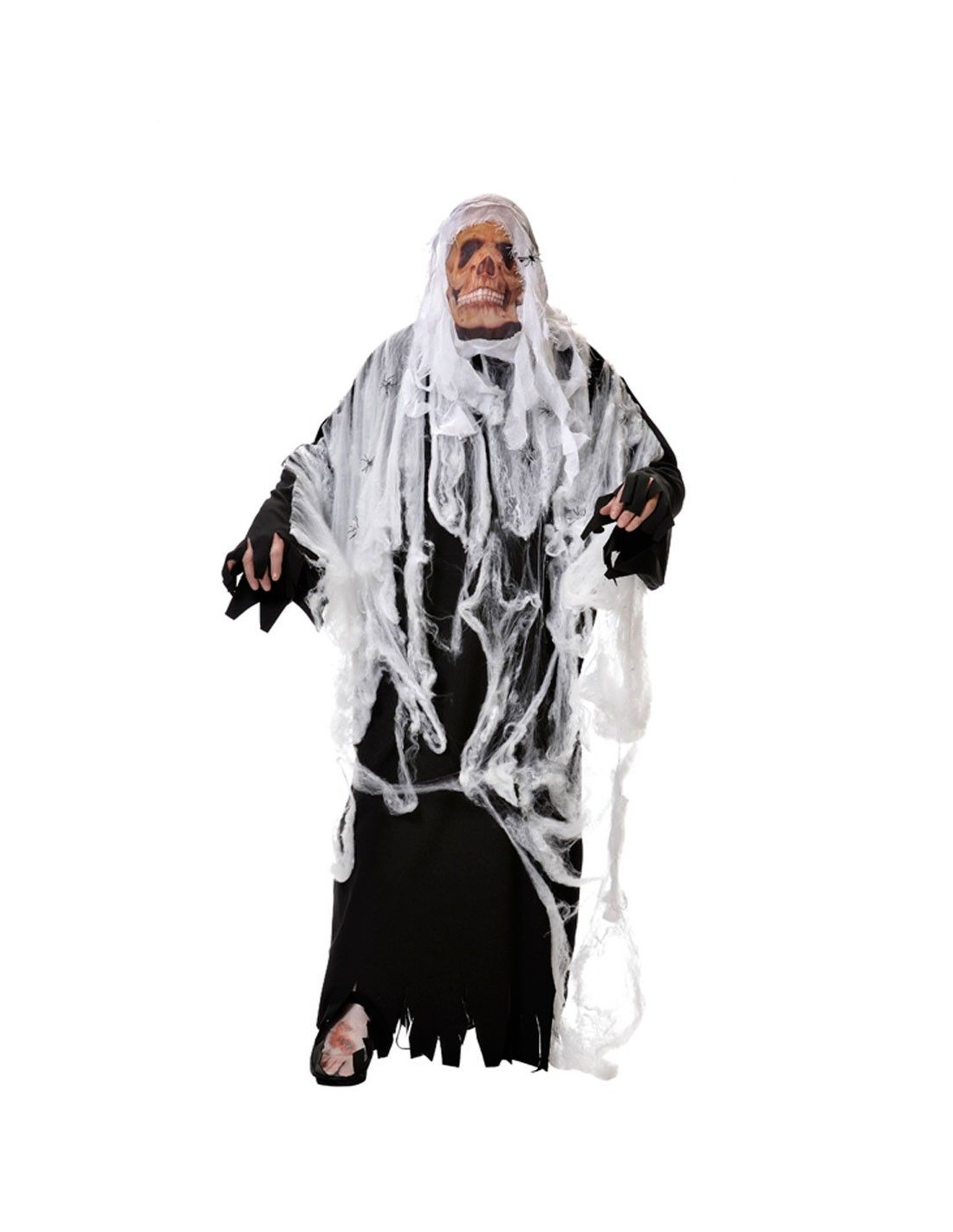 Disfraz de hombre de las tinieblas para recorrer las calles de tu ciudad dispuesto a sembrar el pánico. Incluye túnica, tela de araña, máscara, casaca y zapatos.