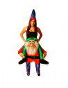 Disfraz a hombros de hippie sobre rastafari para brillas en Carnavales o en tus fiestas más divertidas. Está compuesto por una cinta para la cabeza, chaleco en tono marón con con flores grandes decorativas en diferentes colores y pantalón formando el cuerpo del rastafari. El personaje rasta, está fabricado en tejido de satín, foam y fieltros en diferentes colores.