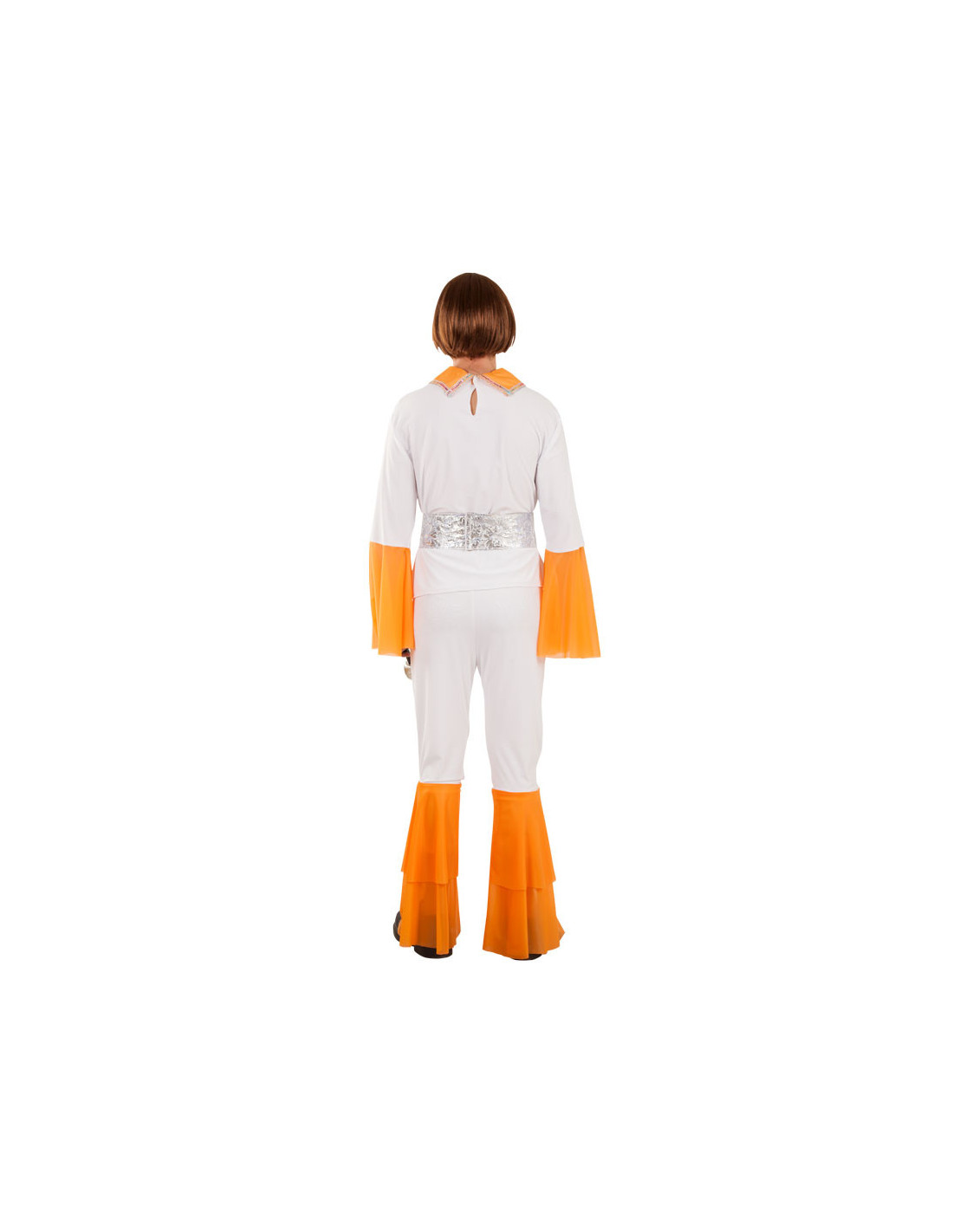 ¡Mamma mía! Vive la época Disco como nunca con este Traje de Abba para hombre. Compuesto por una camisa y pantalón blanco confeccionados en tejido elástico con adornos en color naranja en mangas y tobillos, y con cinturón a juego.