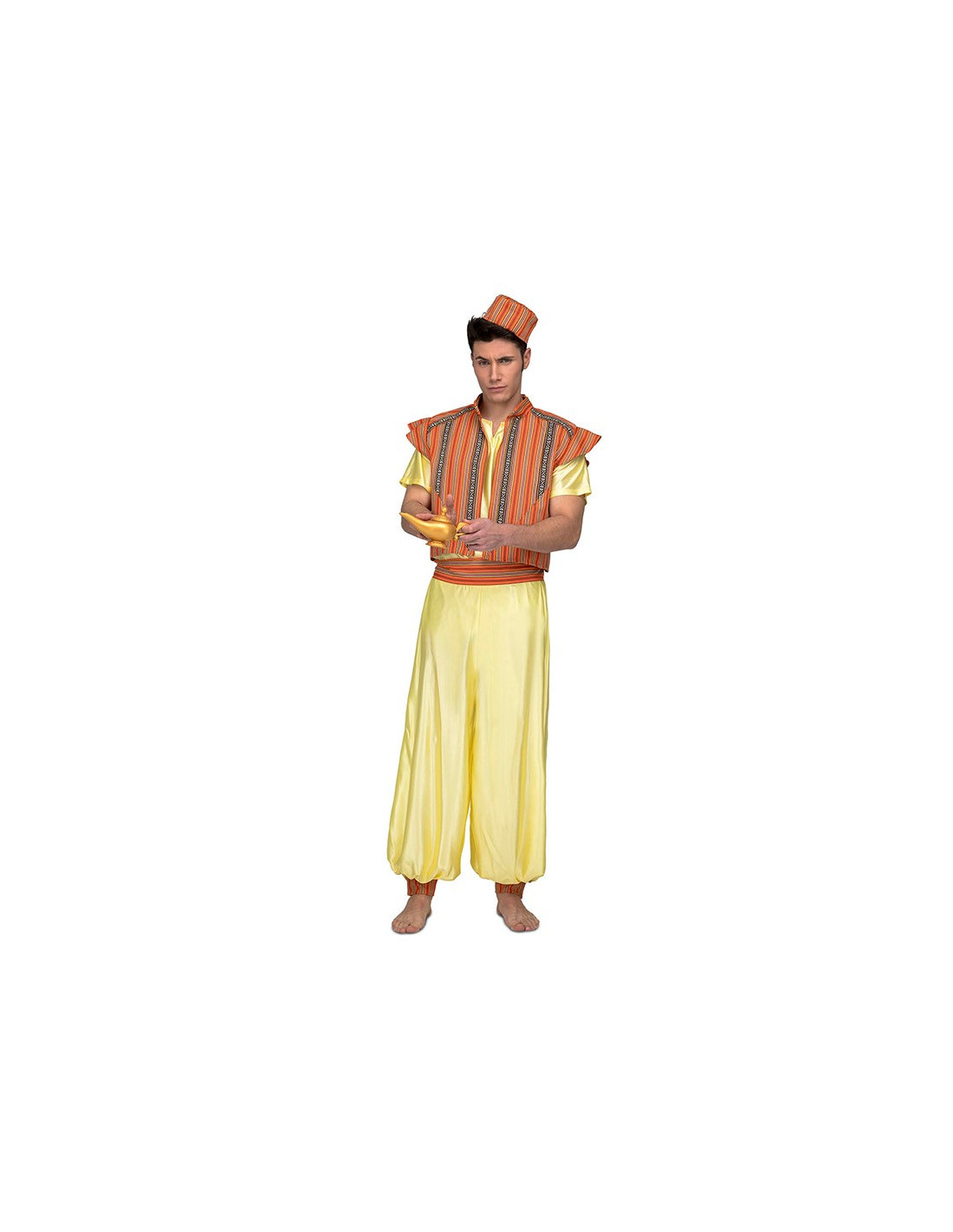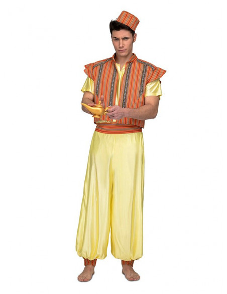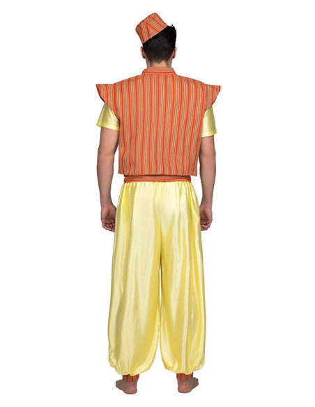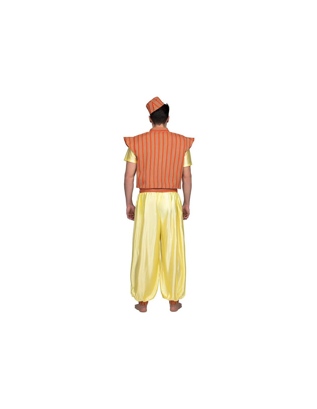 Disfraz Aladín para hombre que incluye chaleco, camisa, pantalón, fajín y sombrero.