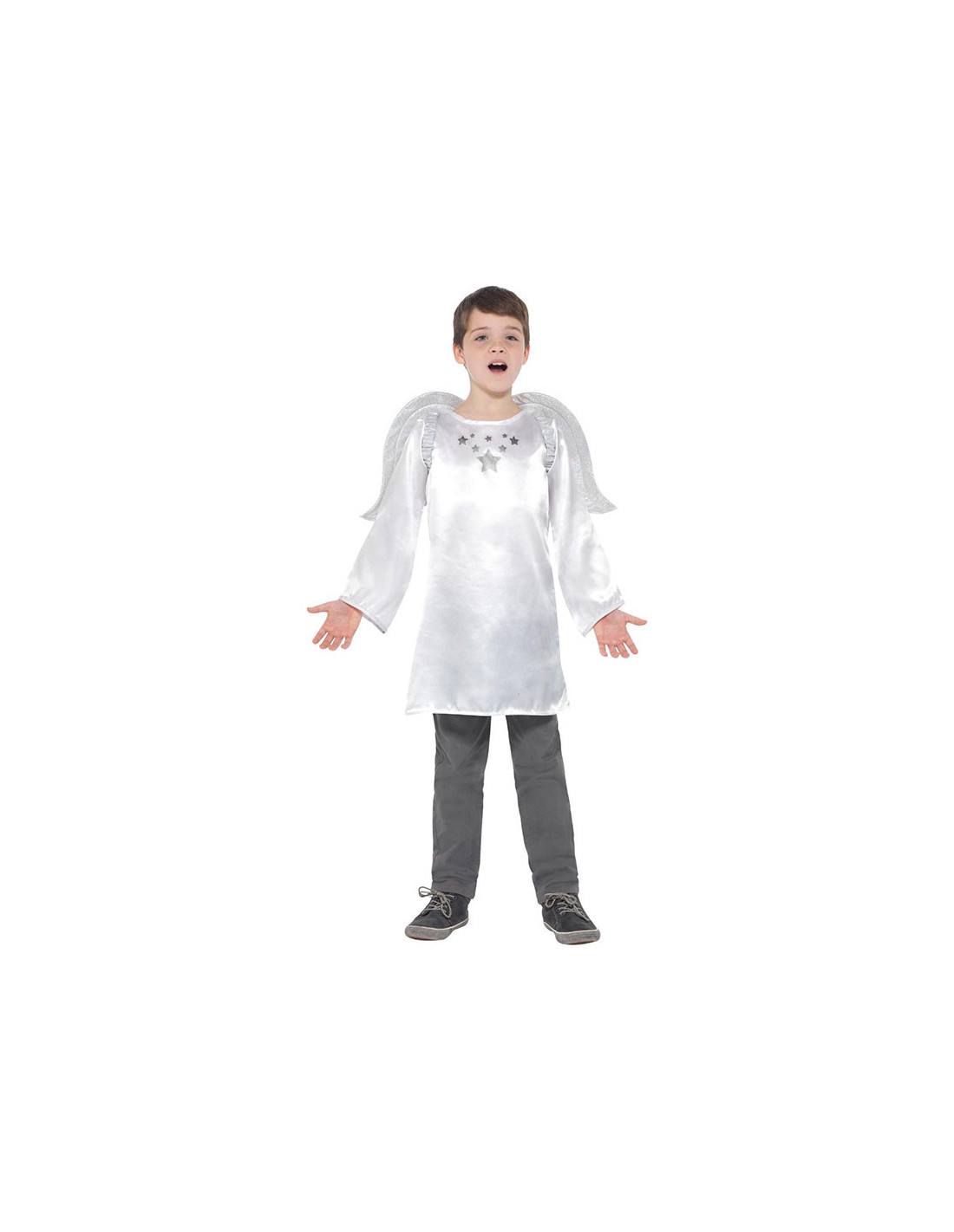 Este traje de ángel infantil sirve tanto para niños como niñas. Incluye una túnica blanca con alas blancas.