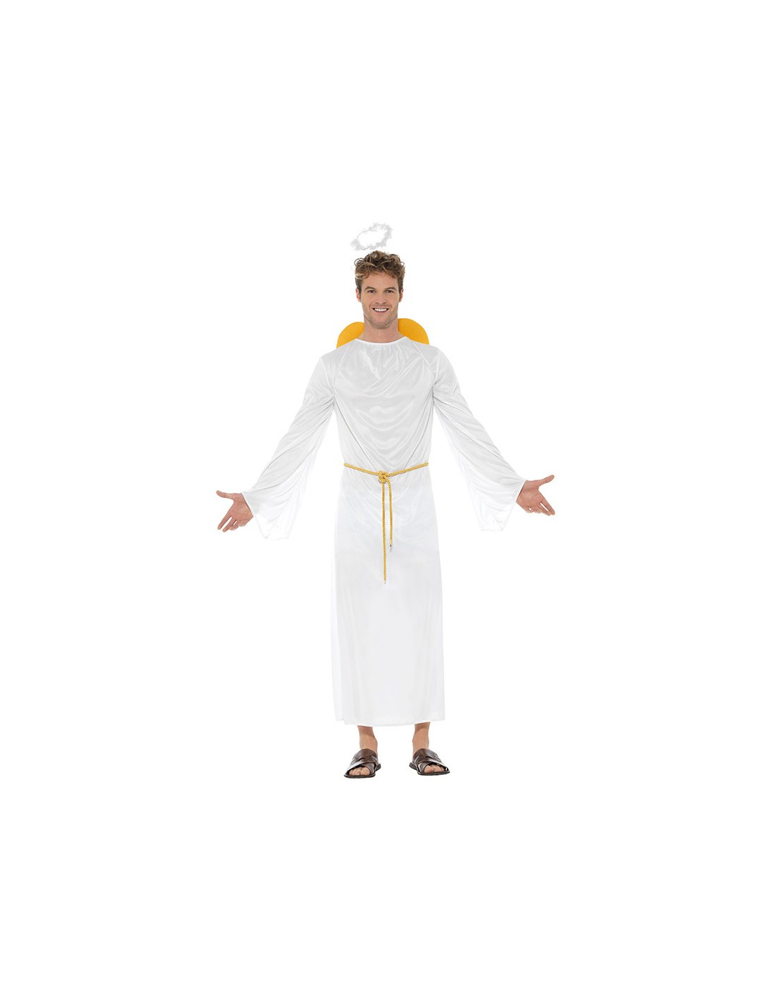 Participa en el Belén viviente con este completo disfraz de ángel unisex para adulto. Sirve tanto para hombre como mujer y es ideal para representaciones teatrales y belenes vivientes en Navidad o Carnaval.