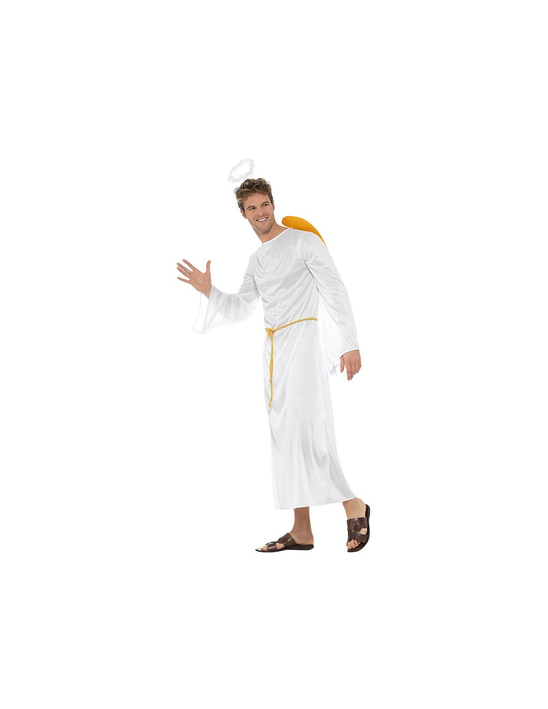 Disfraz ángel unisex para adulto que incluye vestido, cinturón, alas y aureola.