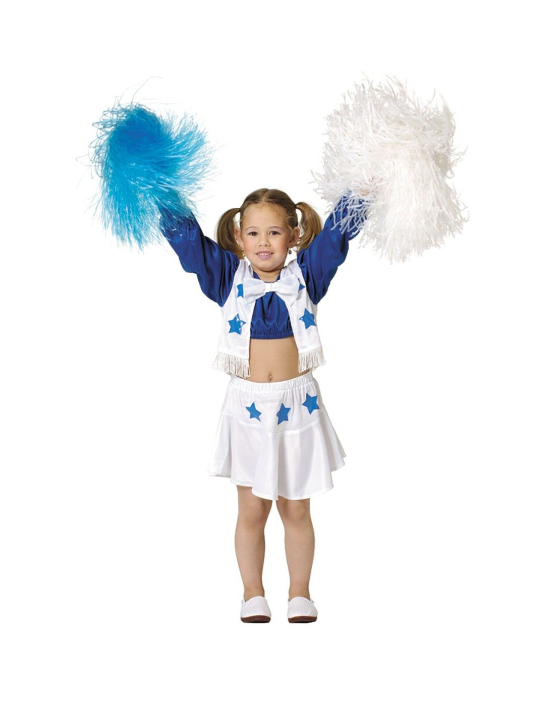 Incluye top, chaleco y falda todo en tejido de punto elastico decorado con diferentes simbolos deportivos. No incluye pompones. Anima a tu equipo favorito con este alegre disfraz de animadora. Incluye top, chaleco y falda.