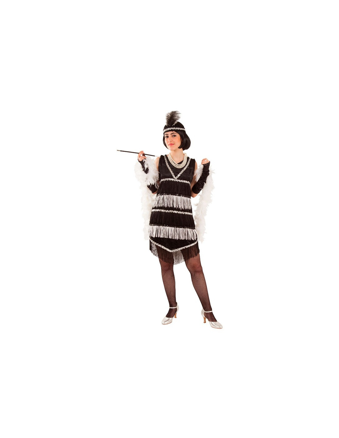 Disfraz Años 20 mujer que incluye vestido, tocado y guantes.