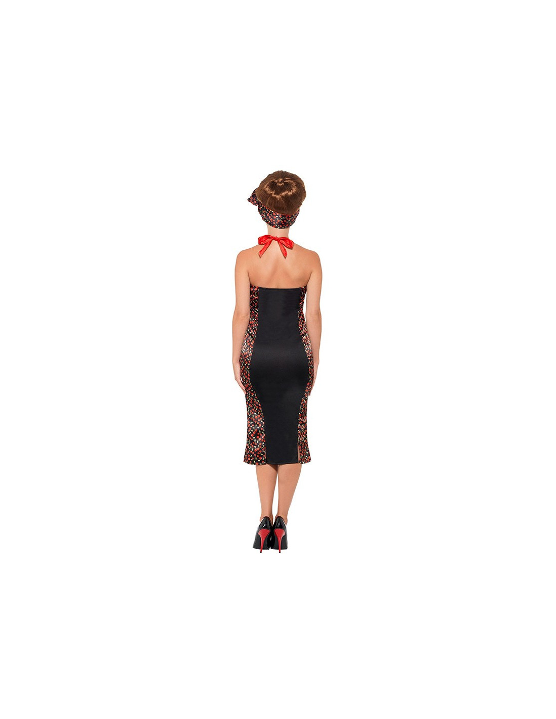 Disfraz años 50 mujer que incluye vestido ajustado y pañuelo para la cabeza.