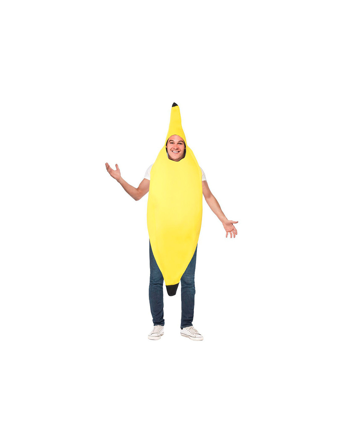 Disfraz banana para adulto para las fiestas de disfraces más divertidas y originales. No pasarás desapercibido este Carnaval con tu disfraz de plátano y serás el alma de la fiesta en la Despedida de soltero más cachonda.