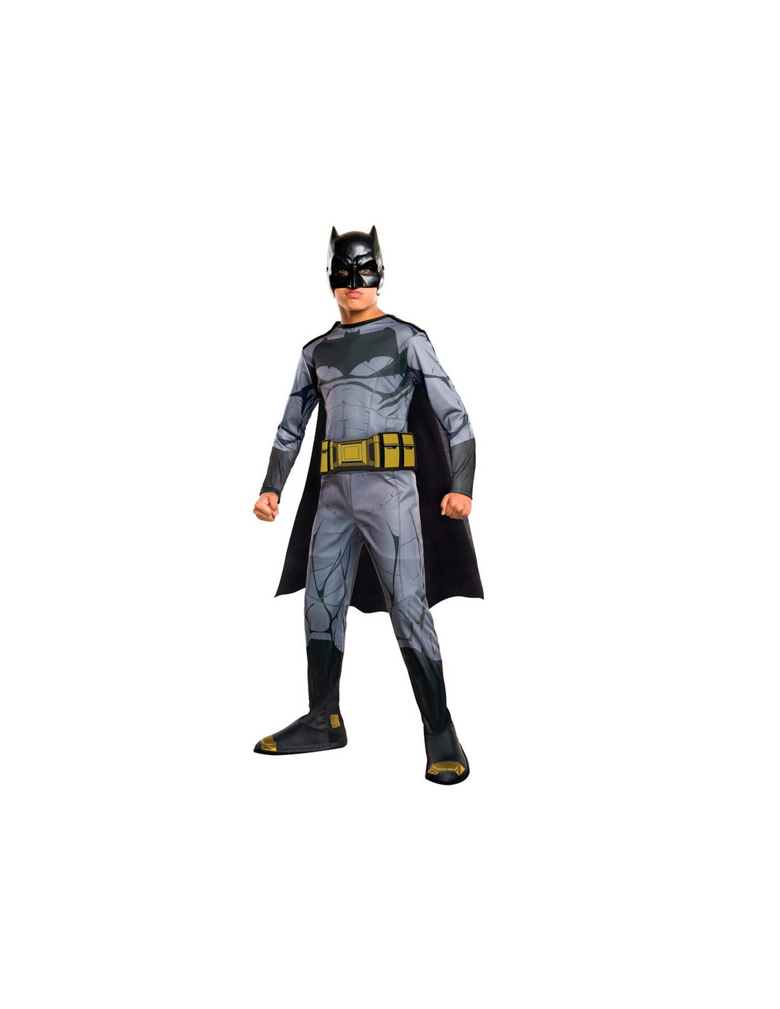 Disfraz Batman de la película Batman vs Superman niño que incluye mono con cubrebotas, cinturón, máscara y capa.