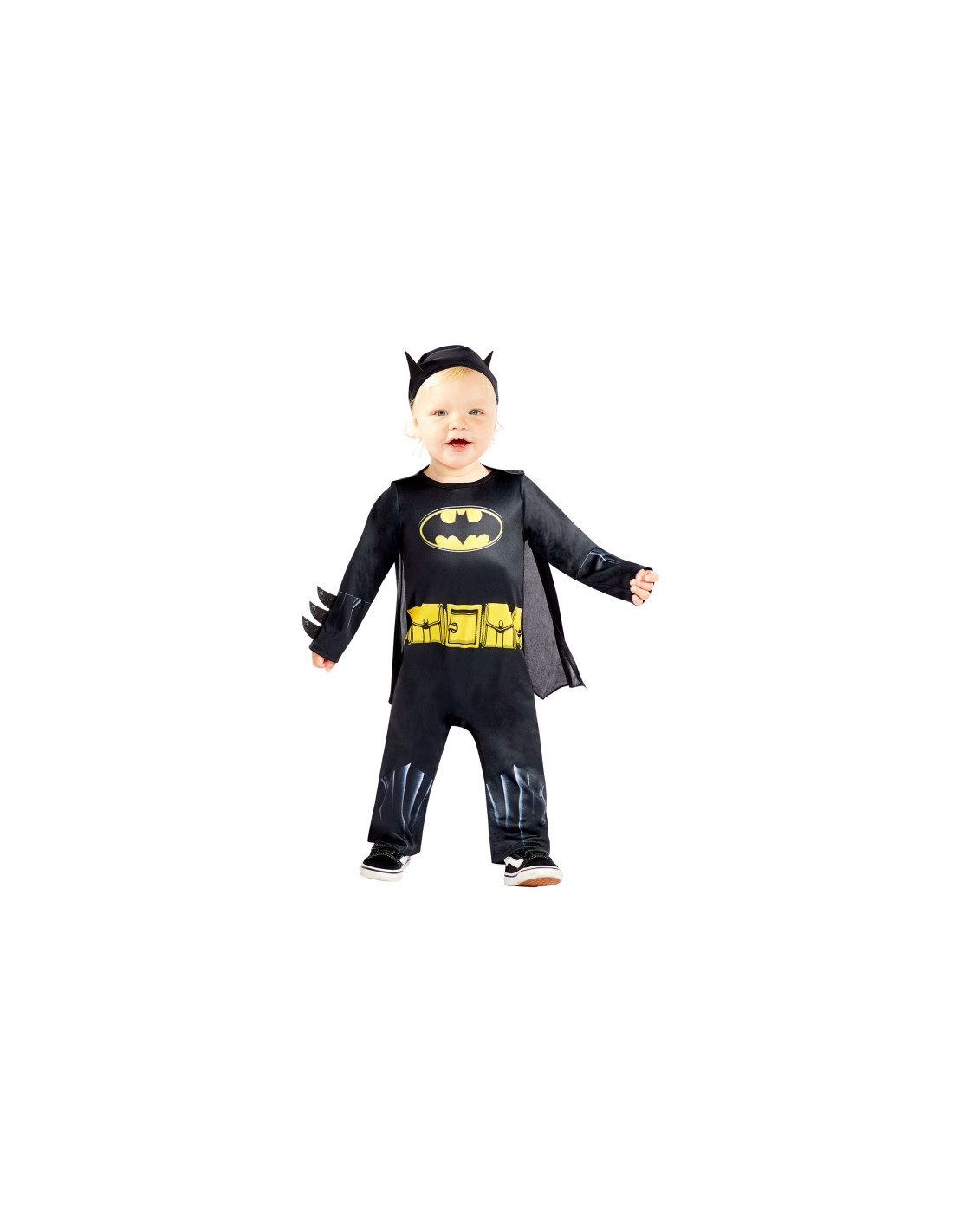 Disfraz Batman para bebé que incluye mono con capa y gorrito.