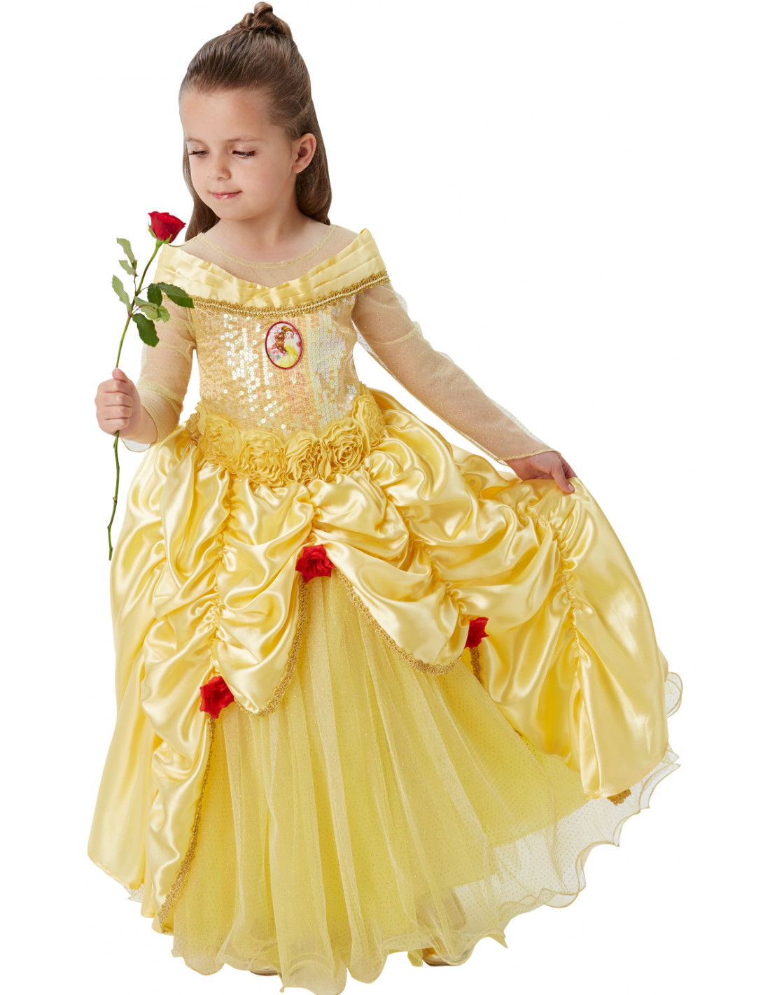 Disfraz Bella Disney Premium infantil que incluye un precioso vestido al que no le falta detalle.