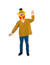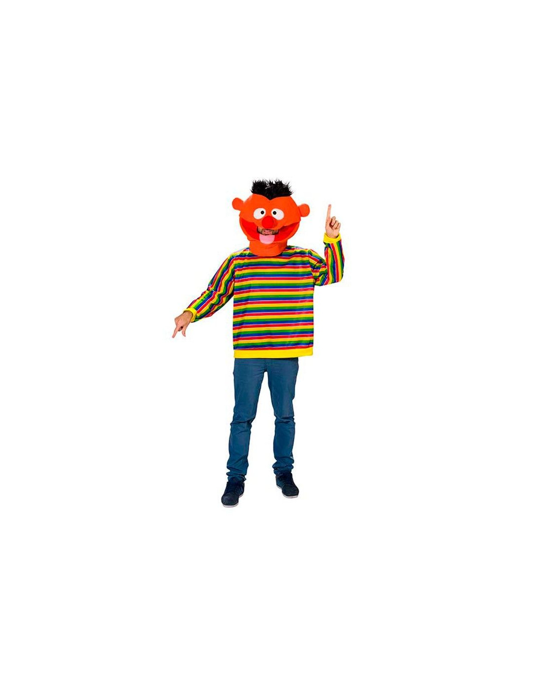 Disfraz Blas Barrio Sésamo con camisa en tejido de satín a rayas de colores y una enorme cabeza de tejido polar acolchado.