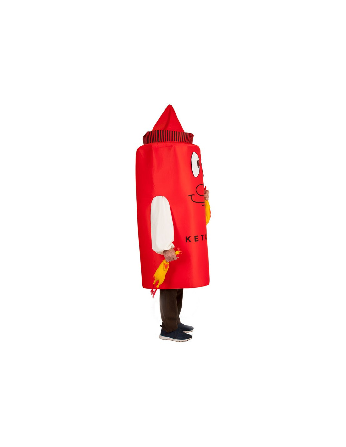 Disfraz Bote de Ketchup adulto que incluye el bote estampado.