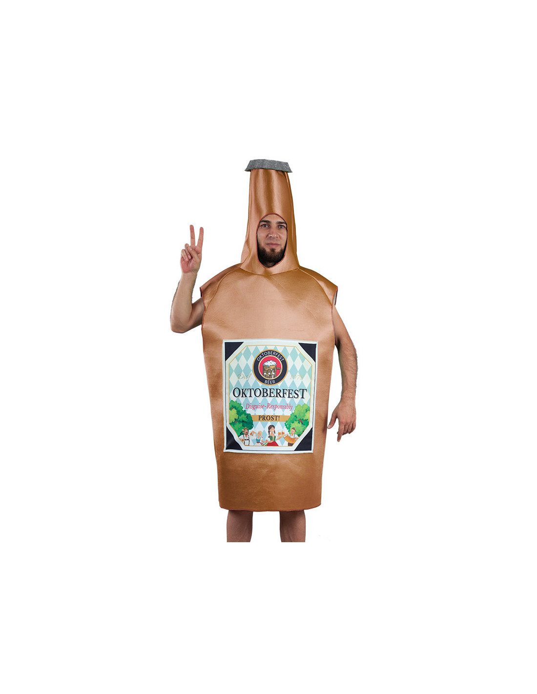 Original disfraz botellín de cerveza adulto para no pasar desapercibido en Carnaval o acudir a la Oktoberfest. Si eres un amante de la cerveza, sin duda este es tu disfraz en Carnaval o Fiestas temáticas.