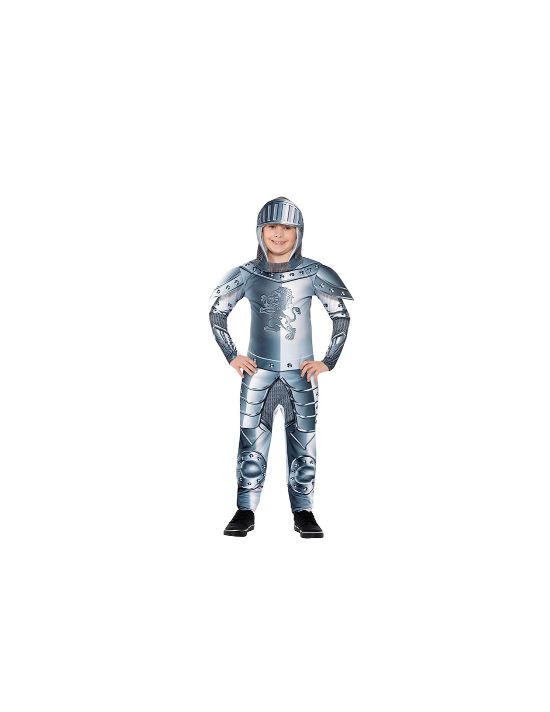 El disfraz caballero de armadura para niño contiene mono de tela estampado y casco de tela estampada.
