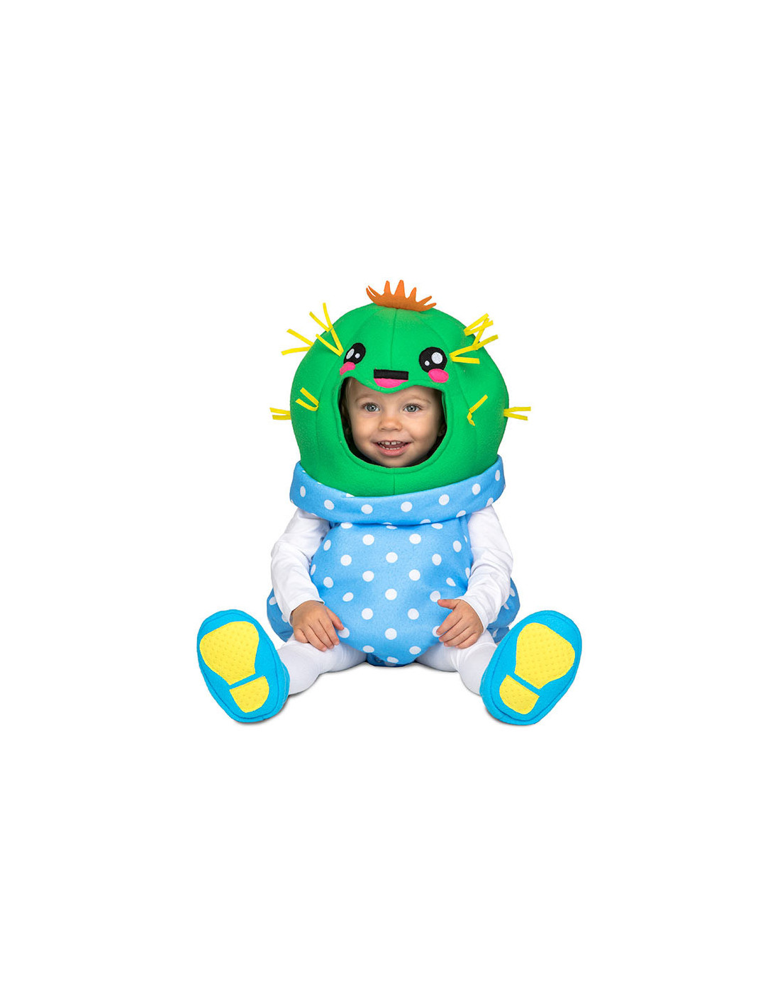 El disfraz cactus para bebé Kawaii contiene traje estilo body, gorro y patucos con la planta decorada y antideslizante.