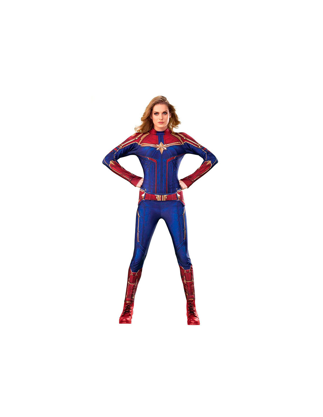Disfraz Capitana Marvel mujer que incluye mono entero y cinturón.