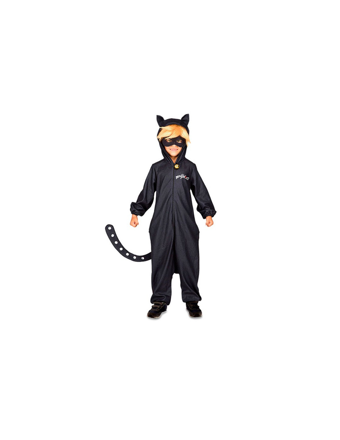 Disfraz Catnoir pijama infantil que incluye mono con cascabel, capucha y rabo, peluca y antifaz. 100% poliester