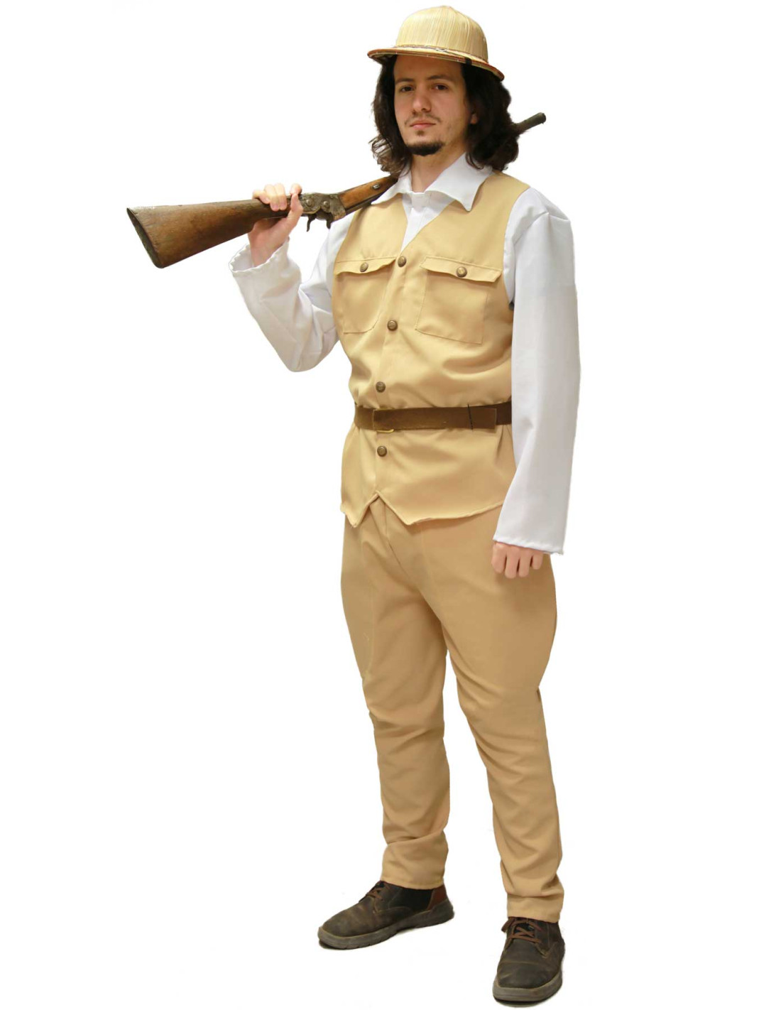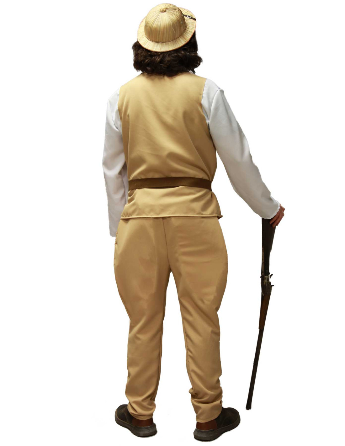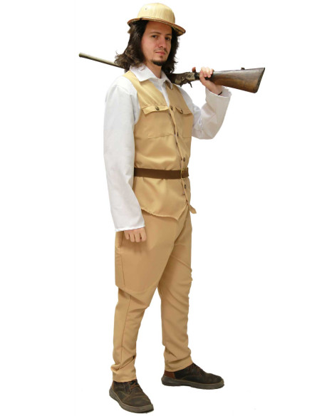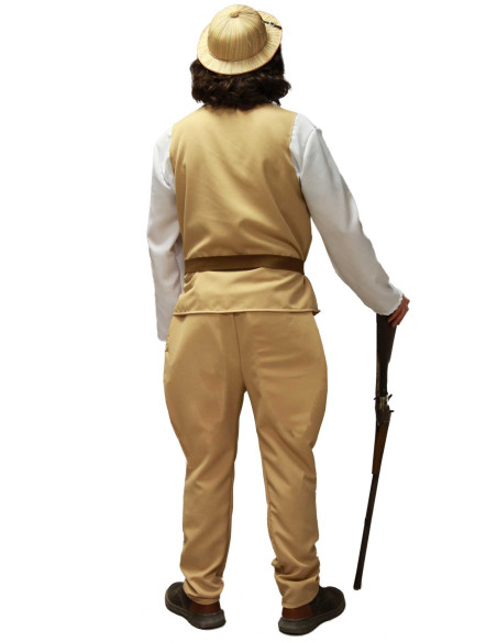 Disfraz cazador safari que incluye chaqueta, cinturón y pantalón.